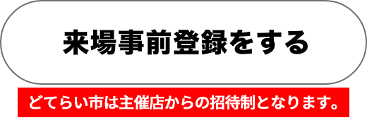どてらい市はプライベートショーにつき、取材・報道には事務局の許可が必要です。また、事務局の許可を得た法人・個人により取材・公開・報道等がなされることがあります。来場者・参加者・展示物の撮影および撮影物が各種媒体においてプロモーション目的で使用されることをご了承ください。取材・報道をご希望の方は、お問い合わせより事務局までご連絡をお願いいたします。